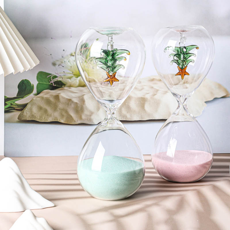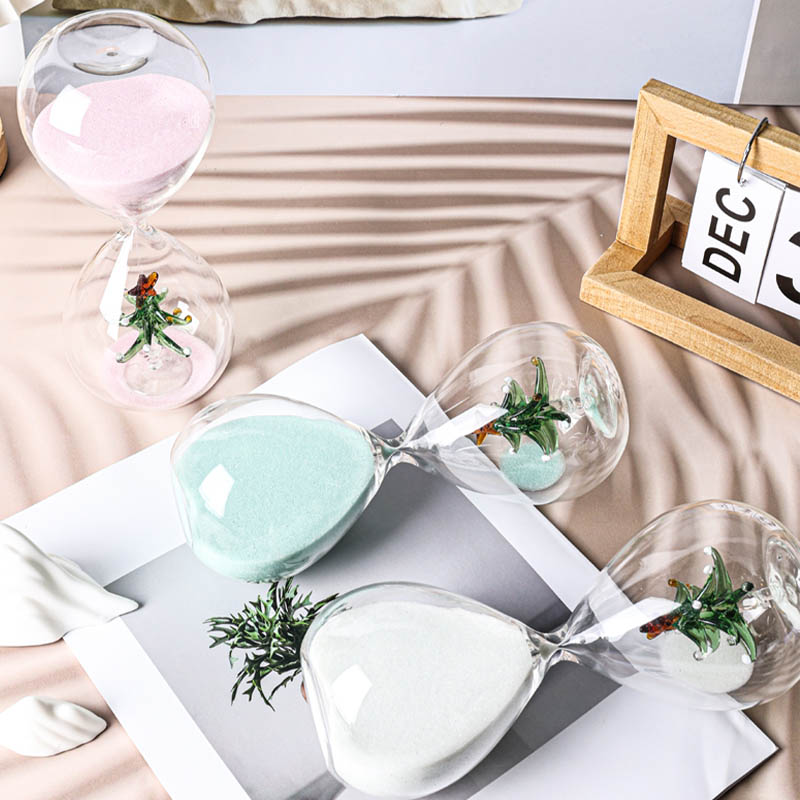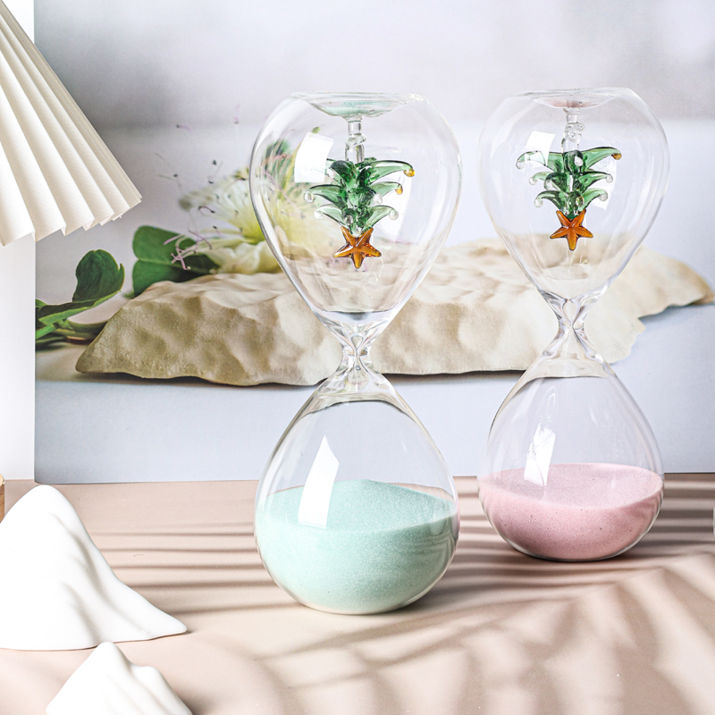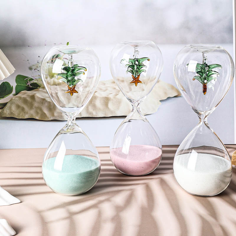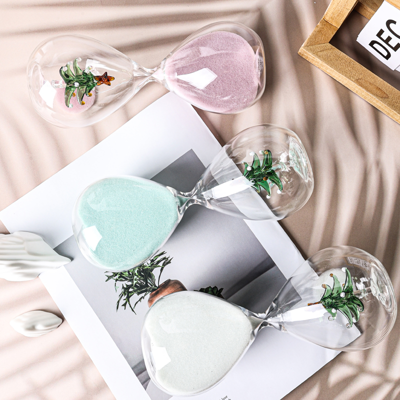 All kinds of hourglass (sand timers) are made of glass tube with blowing then input colour sand or add some accessories such as bamboo frame,wood stand and metal frame etc. They are decoration also are timers.When the sand is flowing from one top to another top the time is a certain.They can be made many colour or as your favourite.