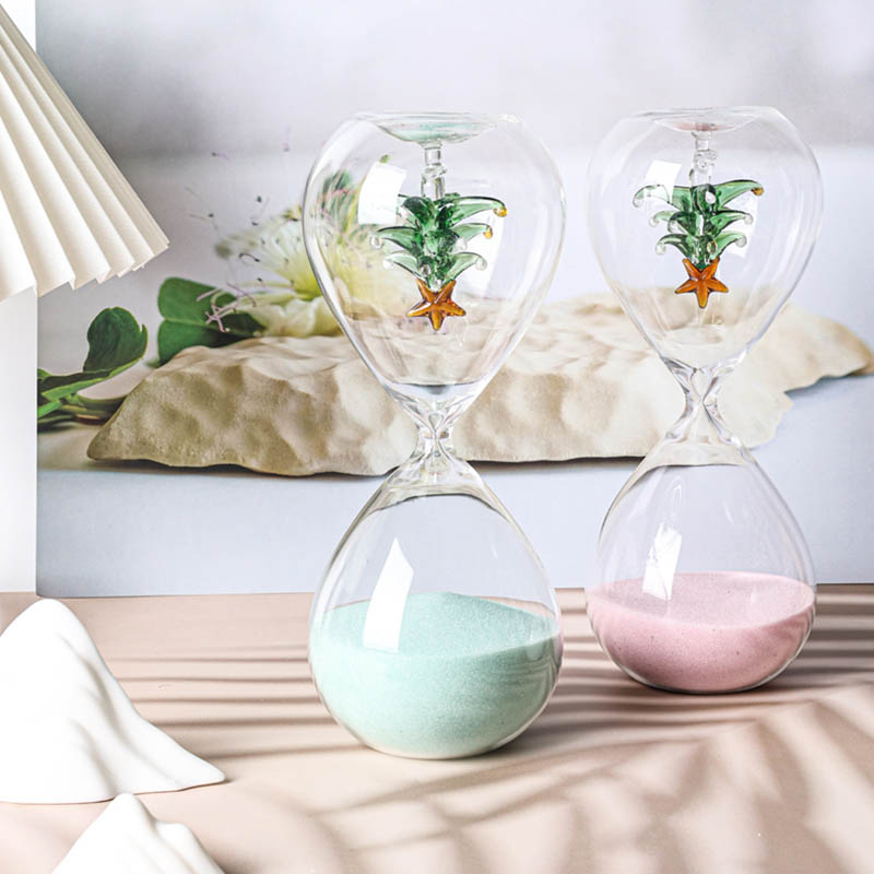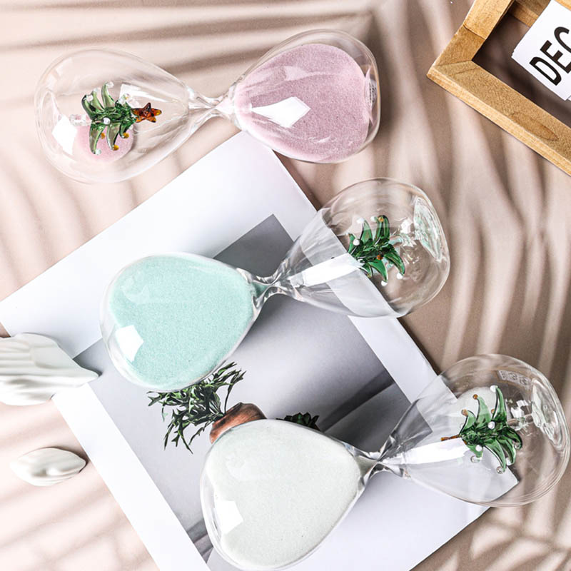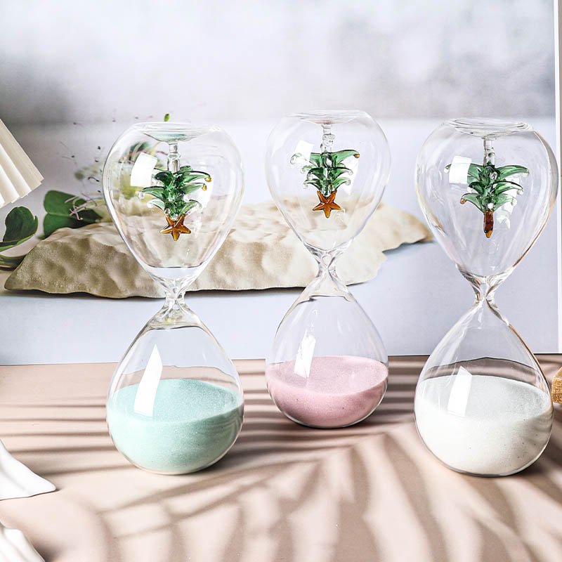 All kinds of hourglass (sand timers) are made of glass tube with blowing then input colour sand or add some accessories such as bamboo frame,wood stand and metal frame etc. They are decoration also are timers.When the sand is flowing from one top to another top the time is a certain.They can be made many colour or as your favourite.