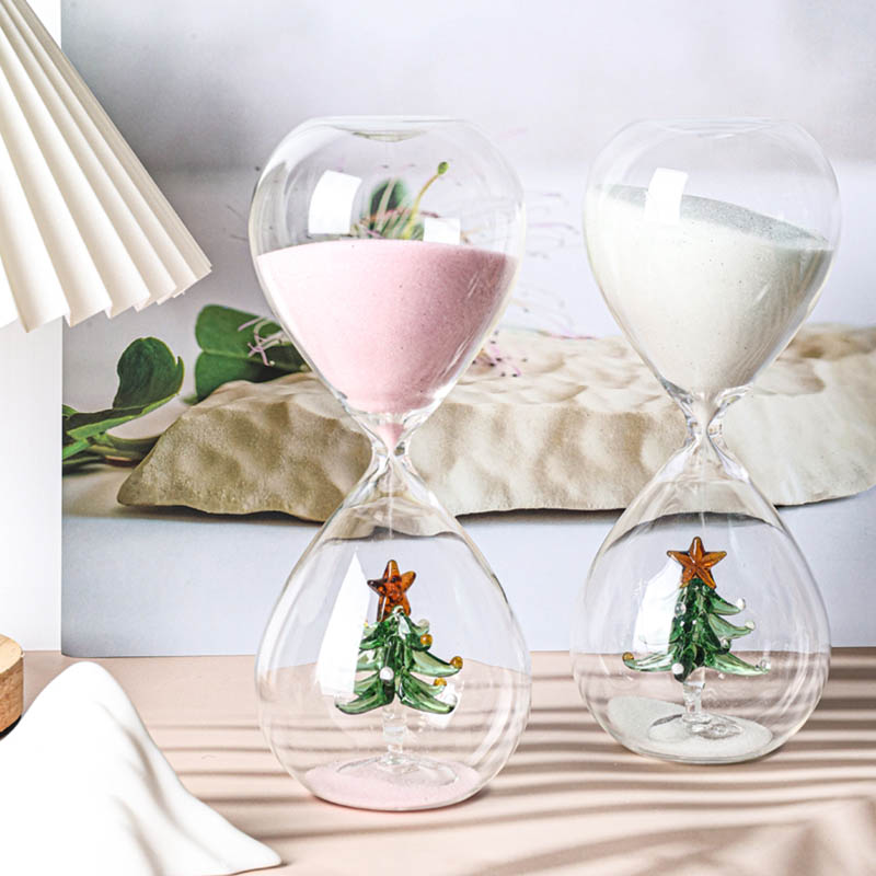 Adorn your holiday space with our Christmas Tree Sand Timer. A beautiful & functional 1-minute or 2-minute hourglass, perfect for Christmas desk decor, kitchen timing, and a unique gift.